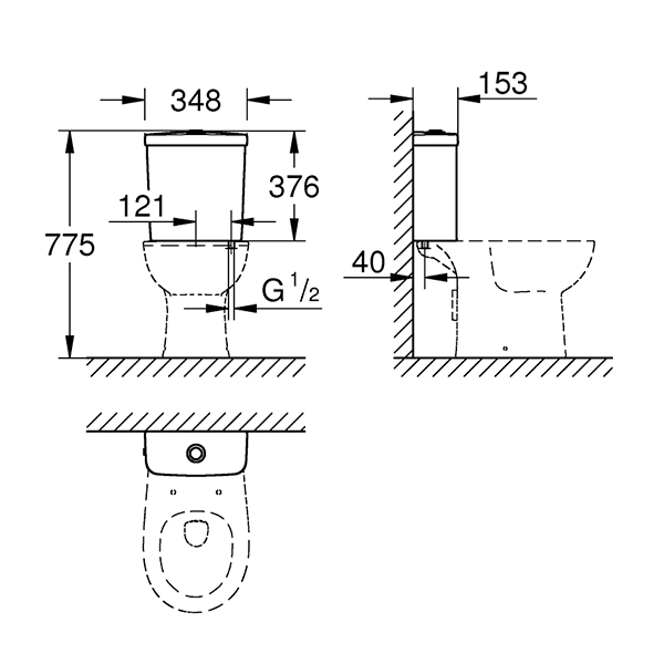Бачок для унитаза, с крепежами, подводка снизу, альпин-белый Grohe Bau Ceramic 39436000