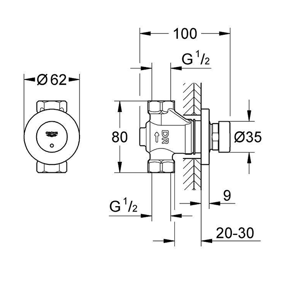 36268000 Euroeco Cosmopolitan S Автоматический проходной вентиль 1/2″, для настенных смесителей