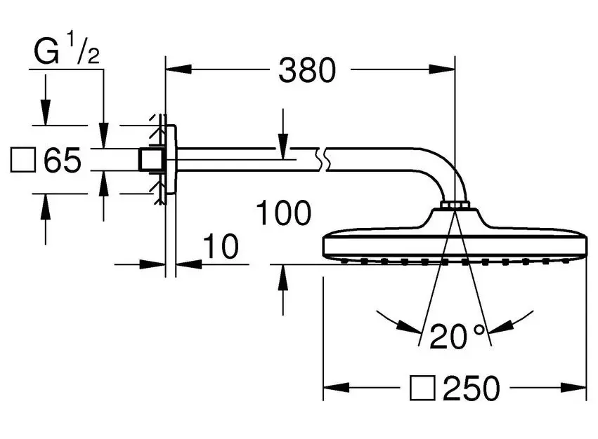 Верхний душ, квадратный, кронштейн 380, хром Grohe Tempesta 250 Cube 26687000
