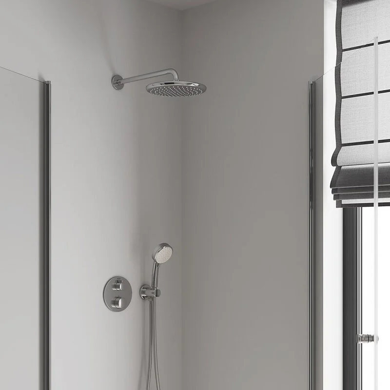 Верхний душ Grohe Tempesta с держателем представляет собой круглый душевой элемент, предлагающий один режим струи — Rain. Он оснащен технологией GROHE DripStop, которая обеспечивает практически полное отсутствие капель после выключения воды, благодаря чему поддерживается чистота и сухость в душе. GROHE DreamSpray обеспечивает превосходный поток воды, а GROHE StarLight гарантирует долговечное хромированное покрытие, устойчивое к царапинам.