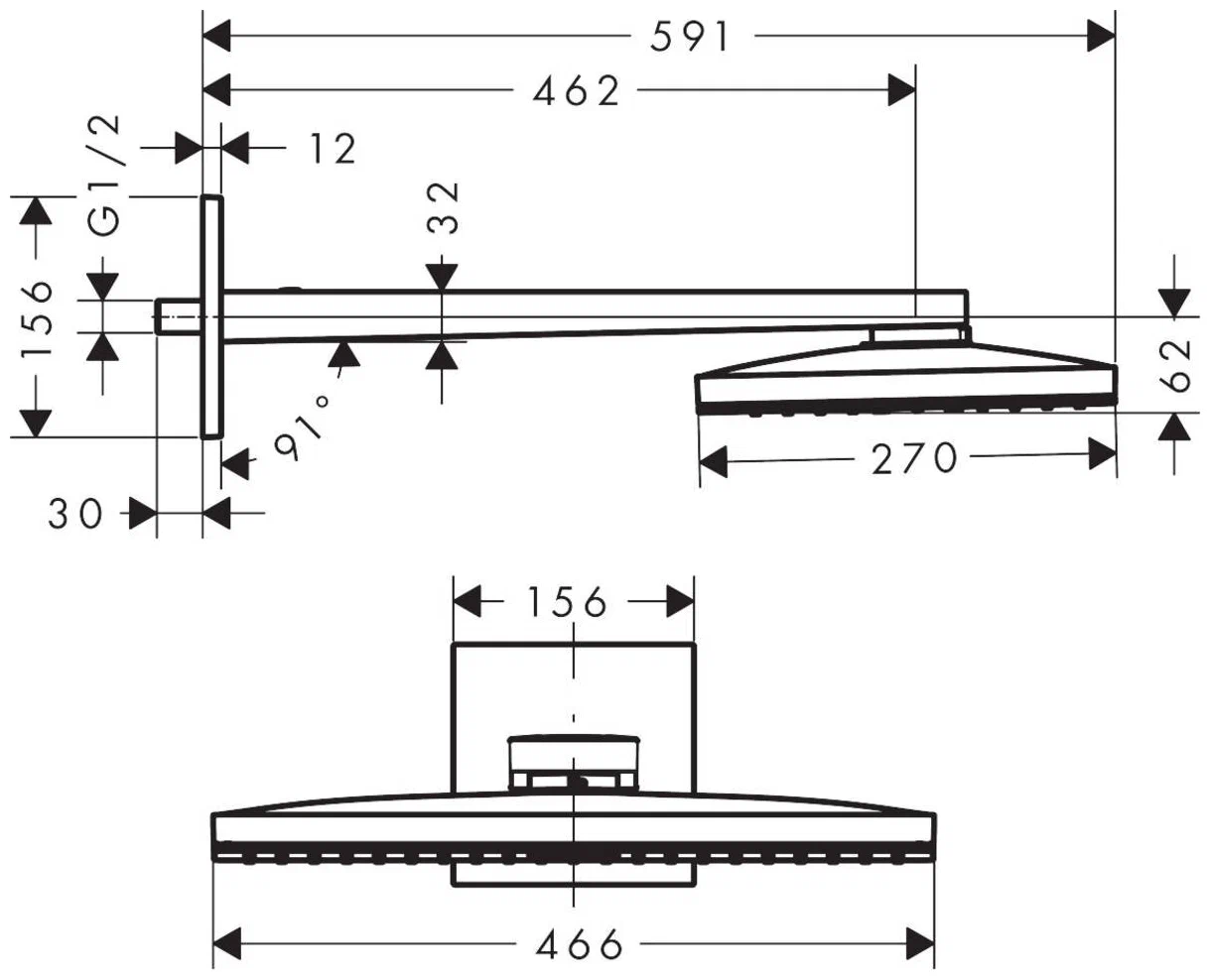 Верхний душ с кронштейном 460, белый/хром Hansgrohe Rainmaker Select 24003400