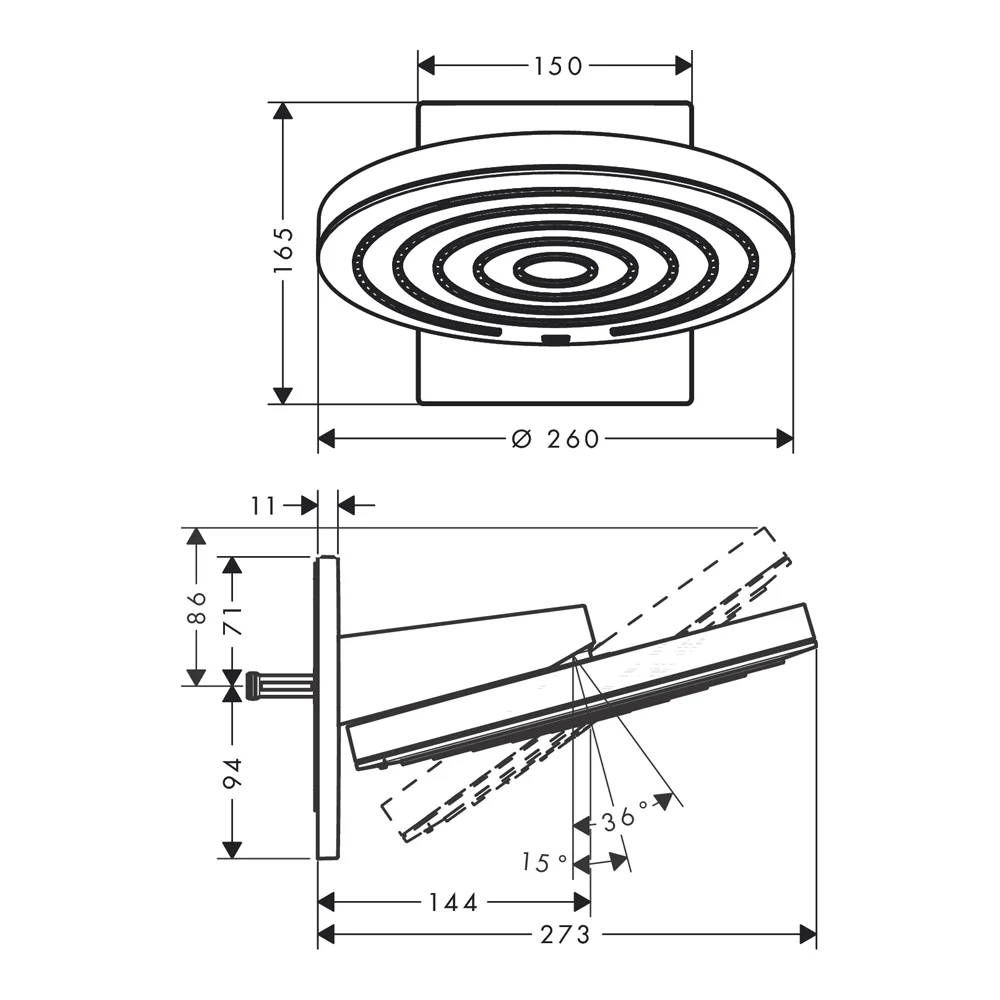 Верхний душ, хром Hansgrohe Pulsify 260 24150000