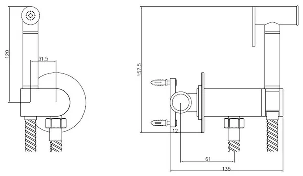 Гигиенический душ со смесителем, встраиваемый, хром ESKO SMH03