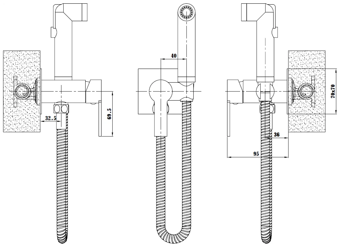 | Комплектация | Душевой шланг; Душевая лейка; Скрытая монтажная часть; Смеситель; Подключение для душевого шланга с держателем |