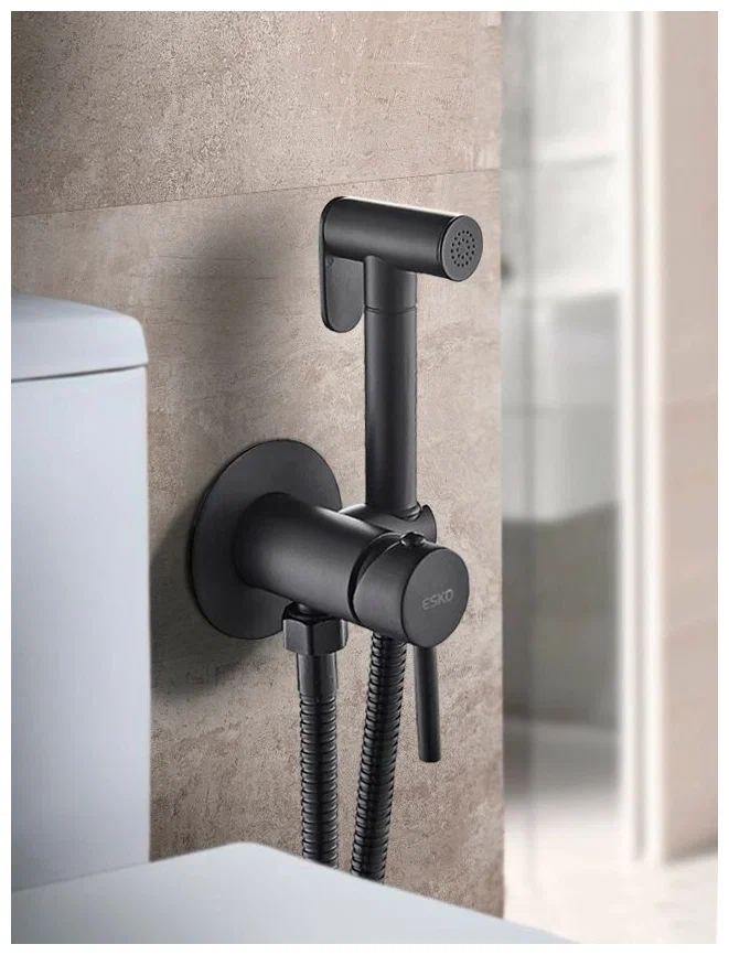 Гигиенический душ Esko SMH06 Black с смесителем представляет собой элегантное и функциональное решение для вашей ванной комнаты, обладающее черным матовым покрытием, придающим изысканный вид вашему интерьеру.