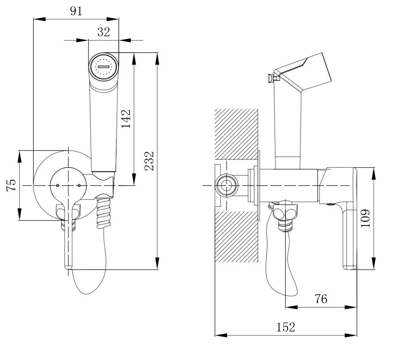 Гигиенический душ со смесителем, встраиваемый, черный VODA Column CLM01B