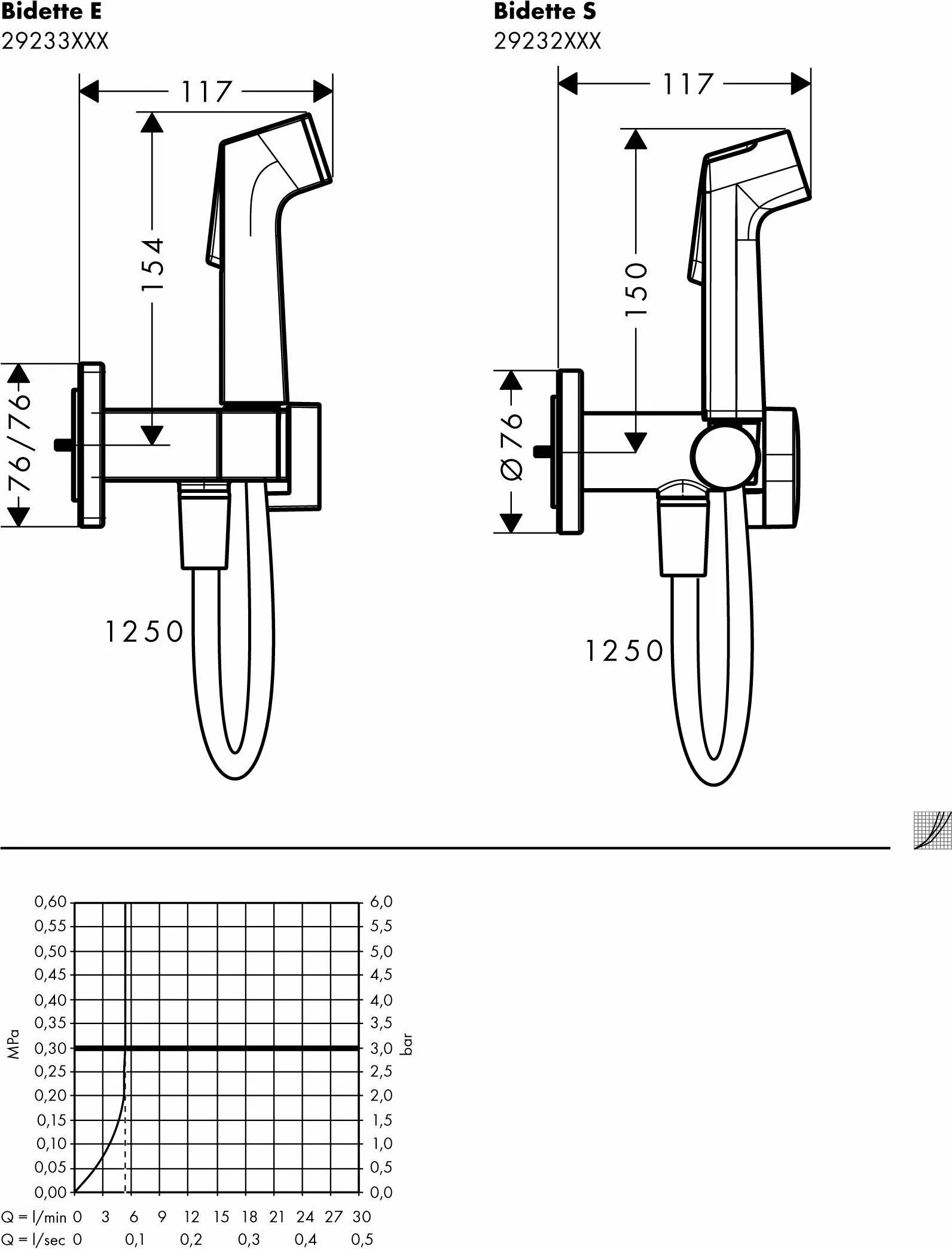 Гигиенический душ с держателем и шлангом 1250, для смешанной воды, черный Hansgrohe 29233670