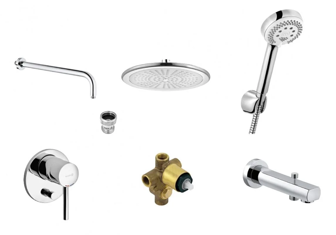 смеситель для душа; душевой гарнитур; верхний душ; кронштейн; излив для ванны; клапан защиты от обратного потока