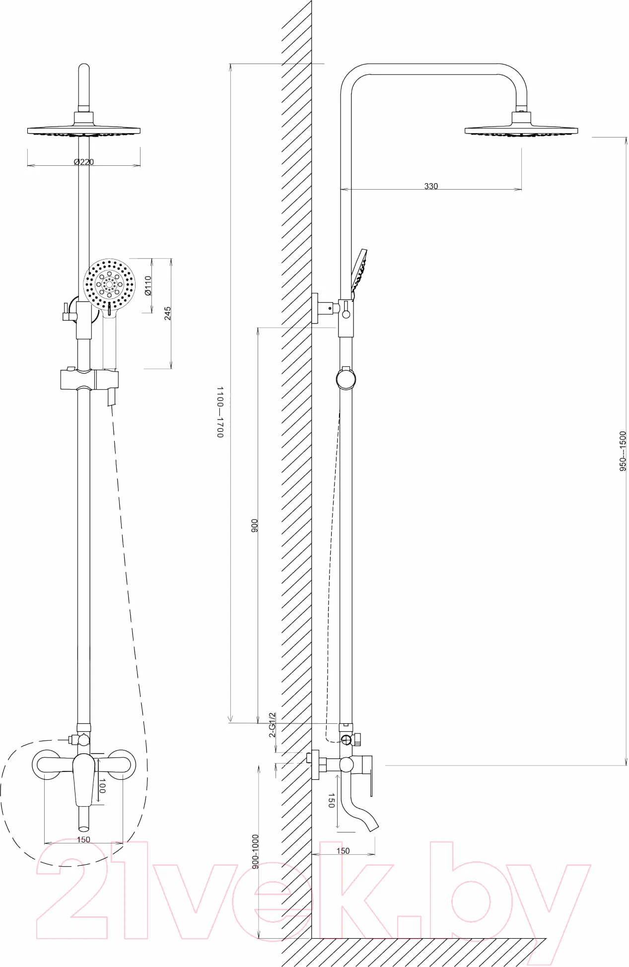 | Комплектация | душевой шланг 150см и шланг для подкл. к смесителю (в метал. оплетке); монтажный комплект |