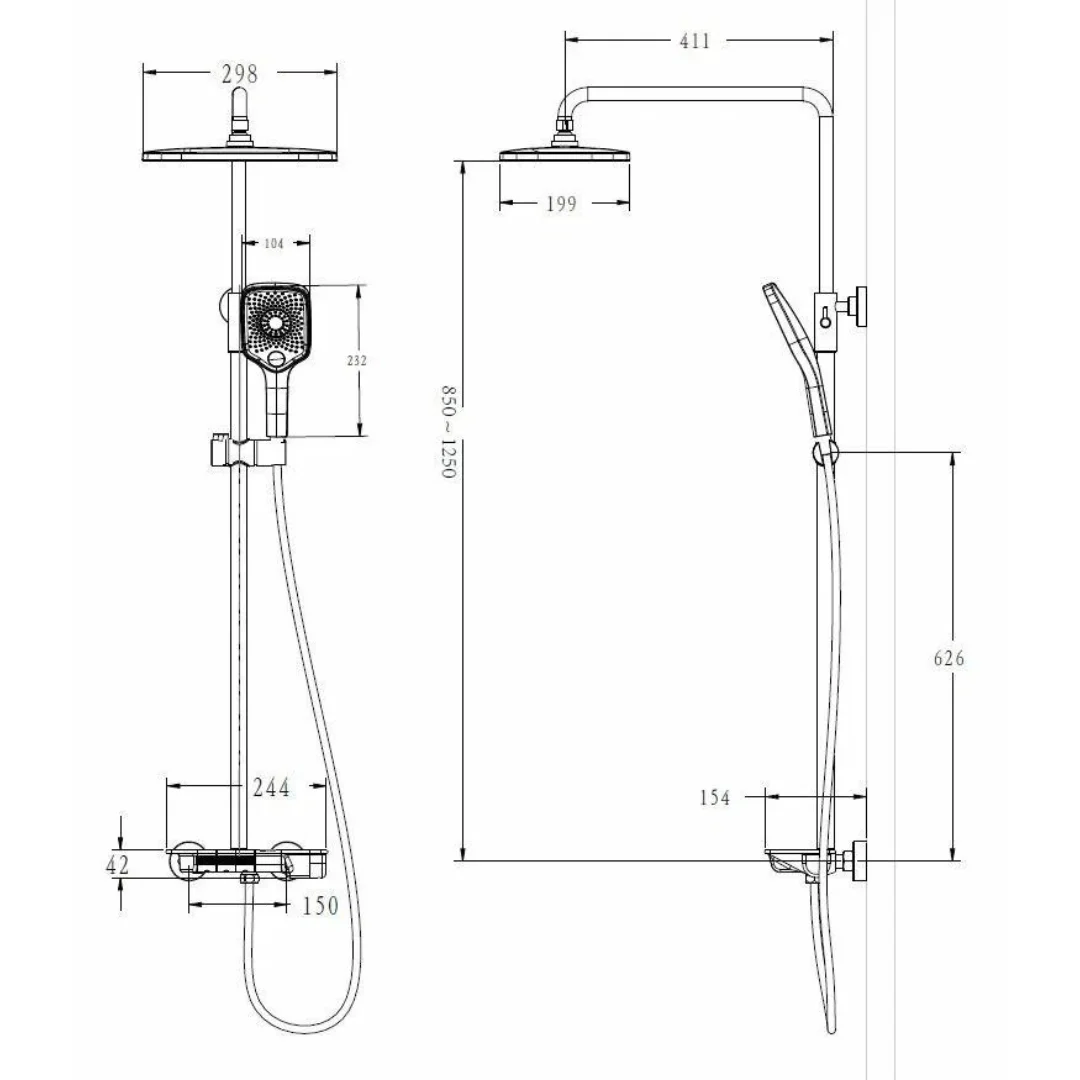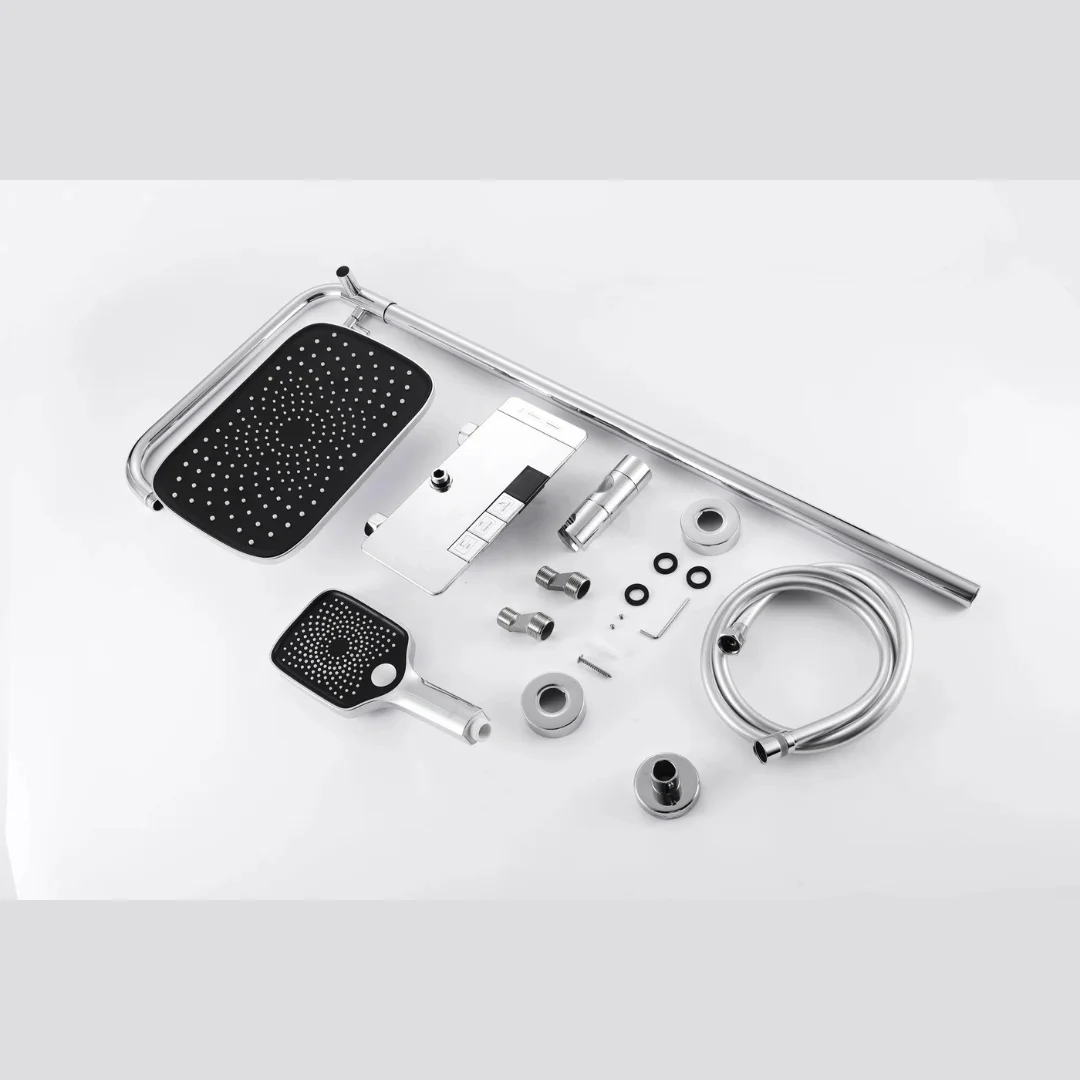 Верхний душ; ручной душ; держатель душевой лейки; шланг; душевая штанга; термостат