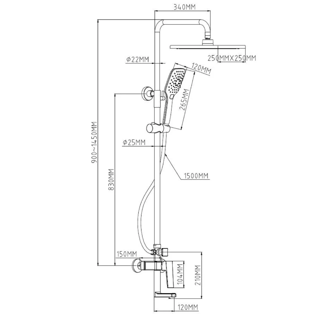 | Размер верхнего душа, мм | 250 мм |