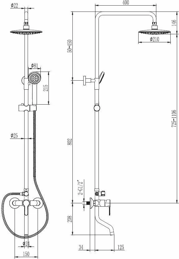 Душевая система со смесителем для ванны, хром VODA VST2000