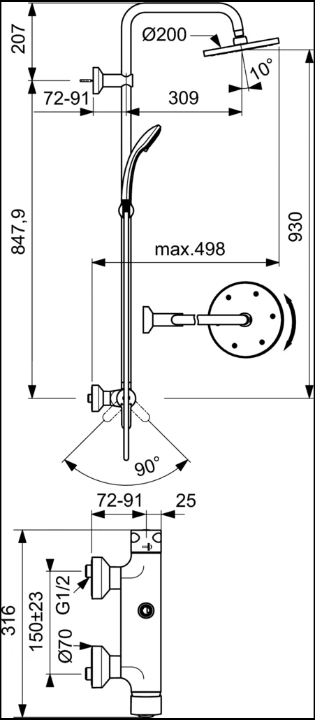 Душевая стойка Ideal Standard IdealRain Eco — это высококачественное и долговечное оборудование, предназначенное для обеспечения максимального комфорта при принятии душа. Ее основное преимущество — комбинация верхнего и ручного душей, которые работают в тандеме благодаря двухпозиционному смесителю с надежным керамическим картриджем.