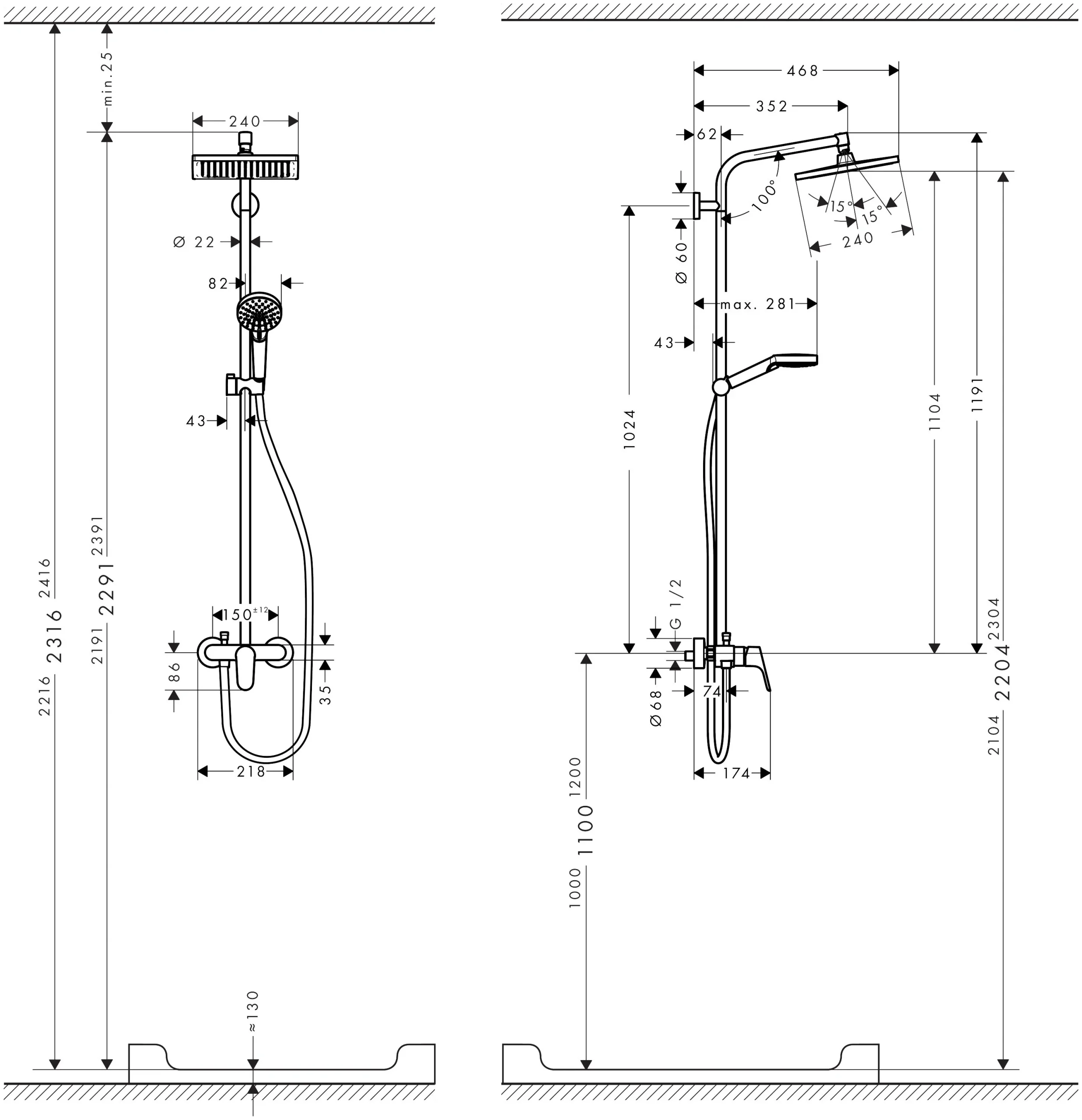 HG27284000 Crometta E Crometta E 240 1jet Showerpipe Душевая система с однорычажным смесителем для душа