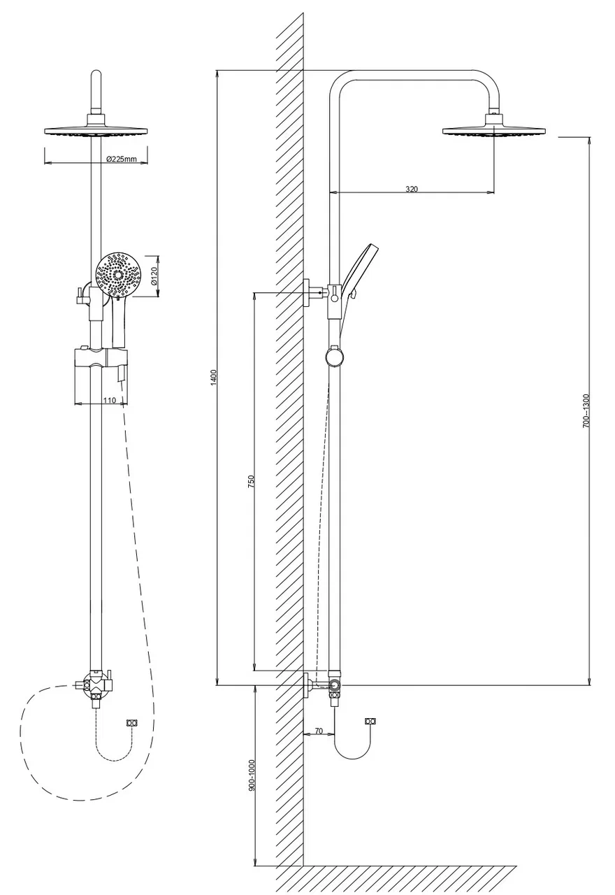 Душевая система с переключателем, без смесителя, хром VODA Drop VST1000-1