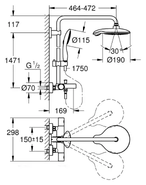 Душевая система с термостатом для ванны, хром Grohe Euphoria System 190 26227000