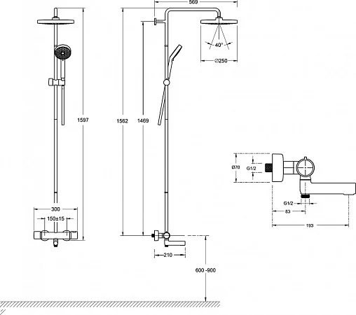 Размер верхнего душа, мм