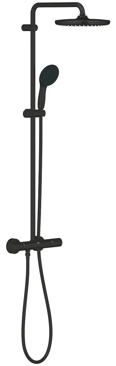 Душевая система Grohe Tempesta 250 266702431 в черном цвете включает термостат, верхний и ручной душ. Современный дизайн и точное регулирование температуры воды делают ее отличным выбором для стильного и комфортного душевого пространства.