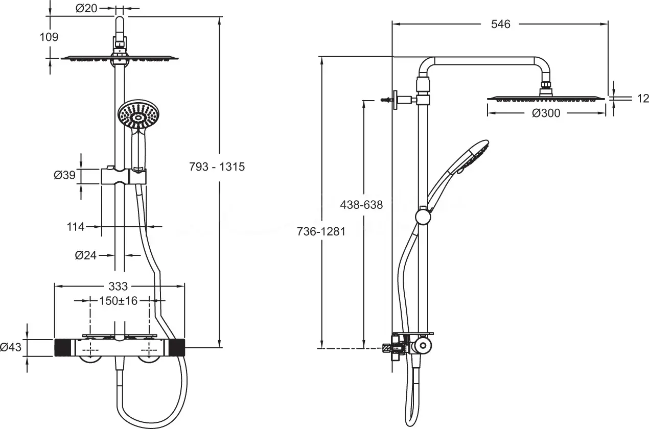 Душевая система с термостатом для душа, хром Jacob Delafon Rivoli E30117-CP