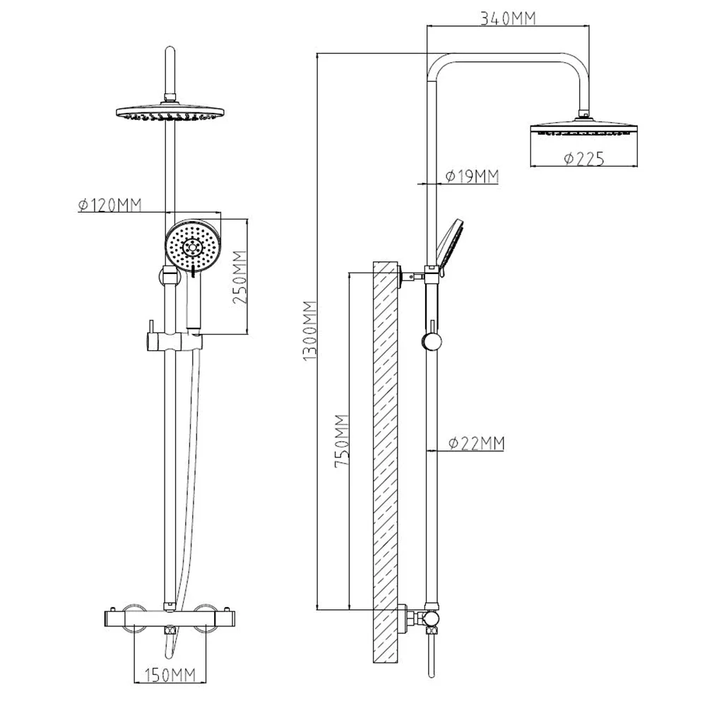 | Размер верхнего душа, мм | 225 |