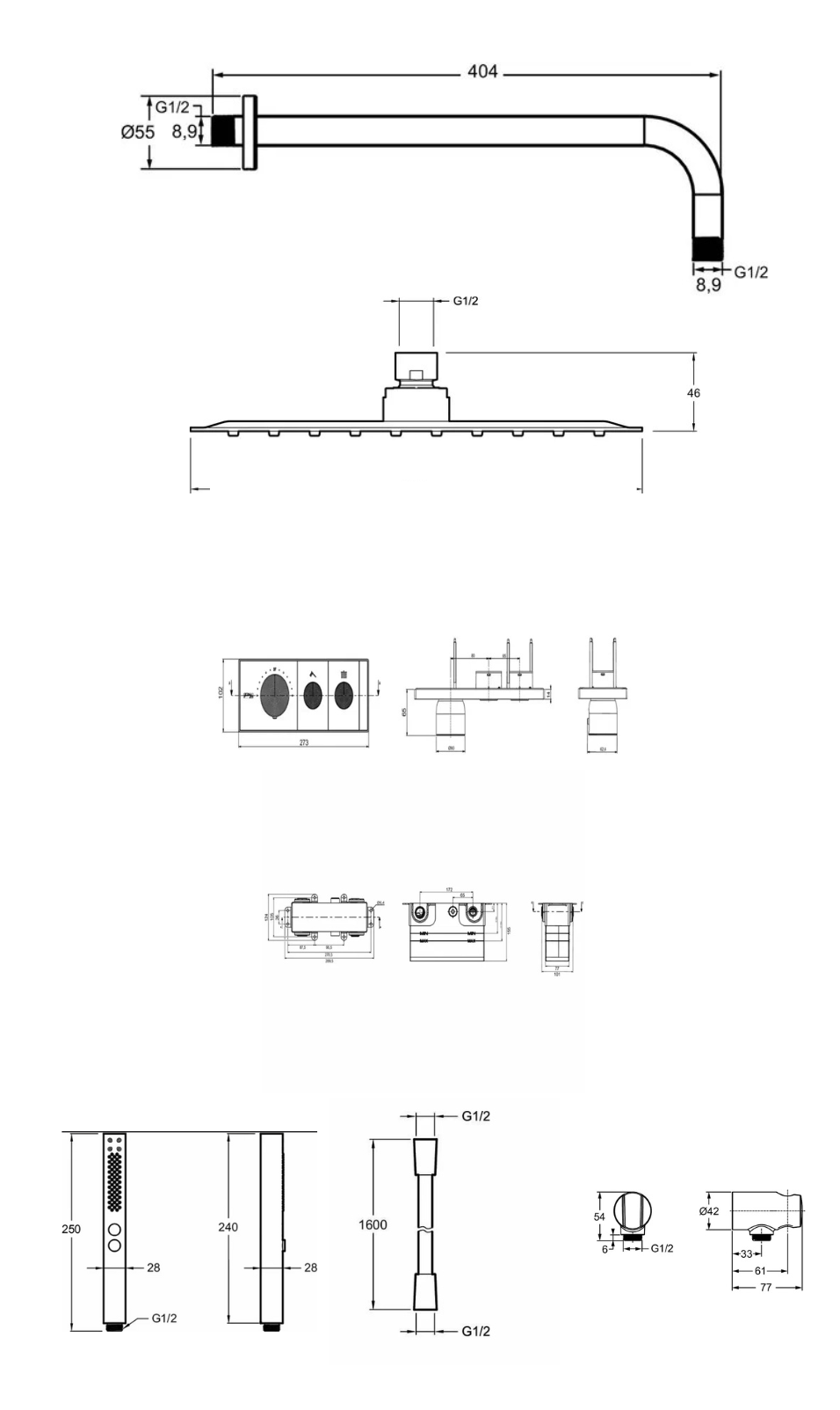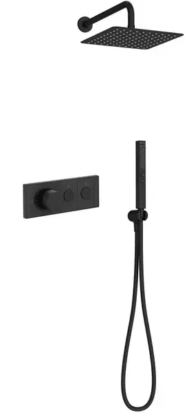 Встраиваемая душевая система 7-в-1 Jacob Delafon Grands Boulevards K2 в матовом чёрном цвете — это полный премиальный комплект для современной душевой зоны. Система сочетает термостат с точной настройкой температуры, верхний дождевой душ, функциональную ручную лейку, изящный кронштейн и шланг. Все элементы выполнены в едином минималистичном дизайне, обеспечивая идеальную совместимость и гармоничный вид.