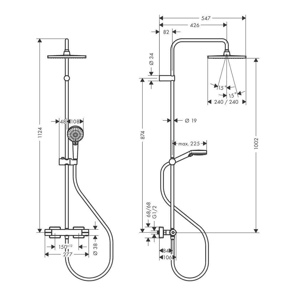 Душевая система с термостатом для душа, черный Hansgrohe Vernis Shape 240 Showerpipe 26427670
