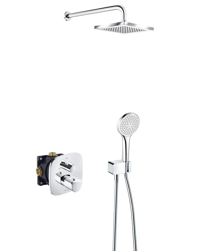 Душевая система Kludi Ameo термостатическая в хромированном исполнении представляет собой идеальное сочетание элегантного дизайна и высокой функциональности. В комплект входят скрытая часть смесителя, смеситель для ванны и душа с термостатом, держатель верхнего душа, квадратный верхний душ с одним режимом струи, а также душевой гарнитур для ванны с квадратным держателем.