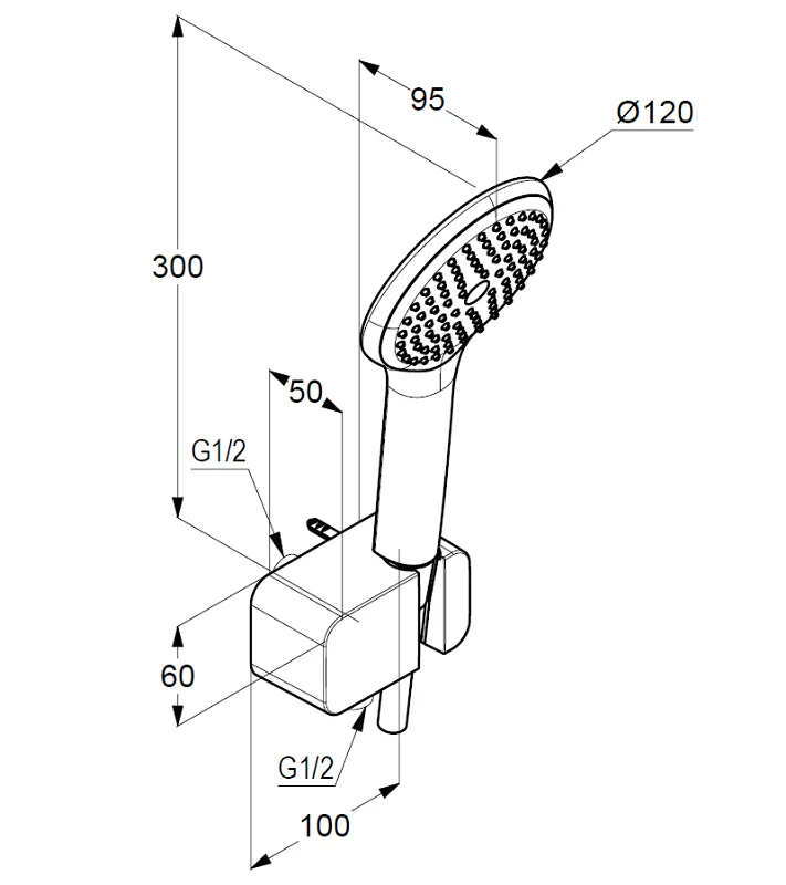 Настенный держатель / Шланговое подключение / Верхний душ / Смеситель для душа