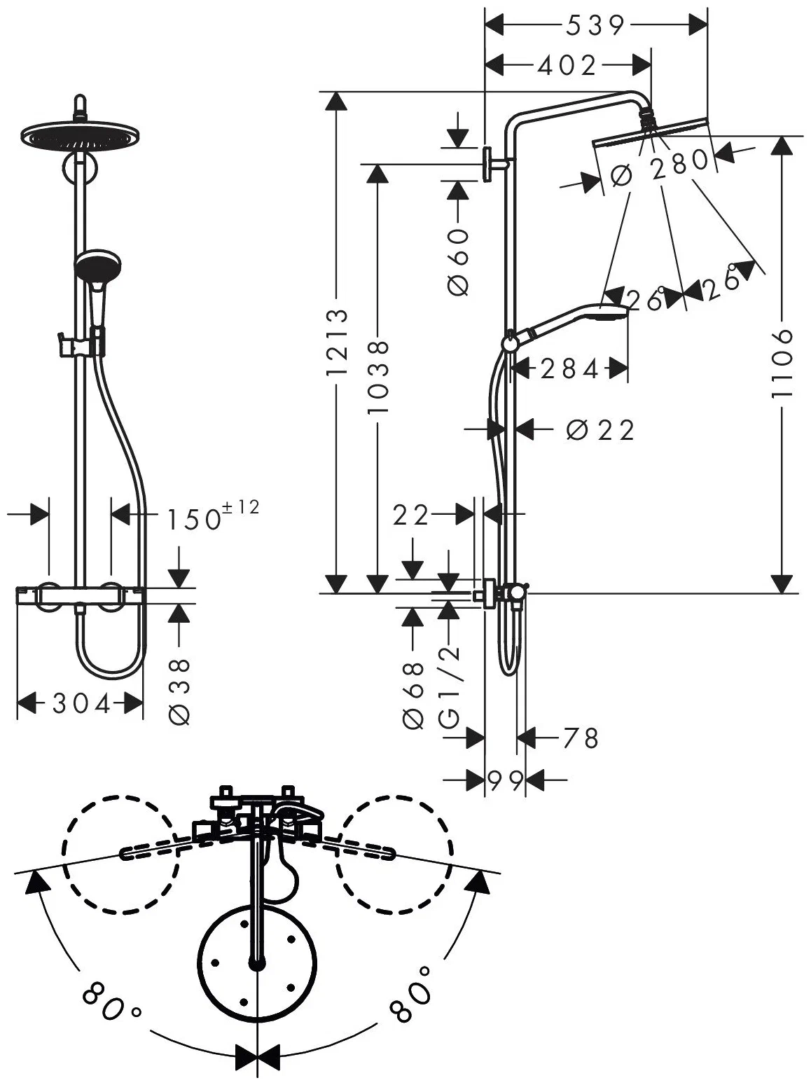Душевая система с термостатом для душа, черный Hansgrohe Croma Select S 26890670