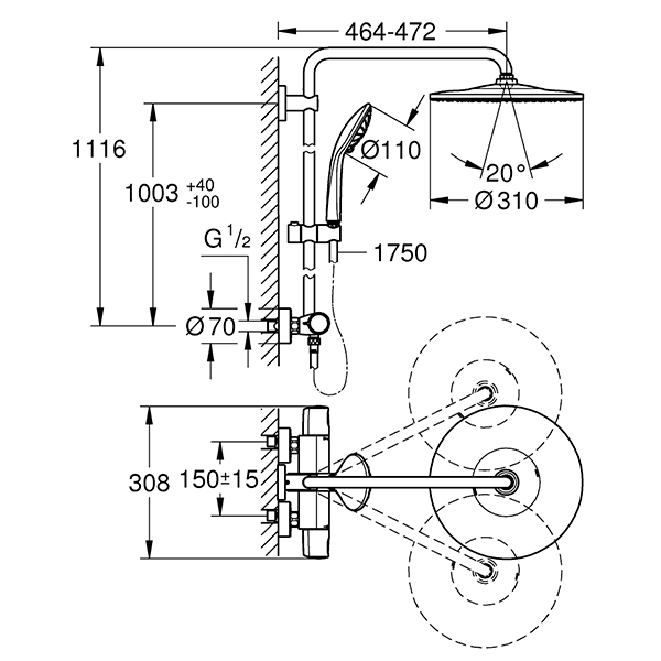Душевая система с термостатом для душа, хром Grohe Euphoria 310 26075001