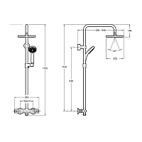 | Комплектация | с термостатическим смесителем и квадратным верхним душем; квадратный верхний душ 200мм (расход воды: 10л/ми); поворотный кранштейн для верхнего душа; гибкий нескручивающийся шланг; ручной душ Citrus; диаметром 90мм; скрытый переключатель |
