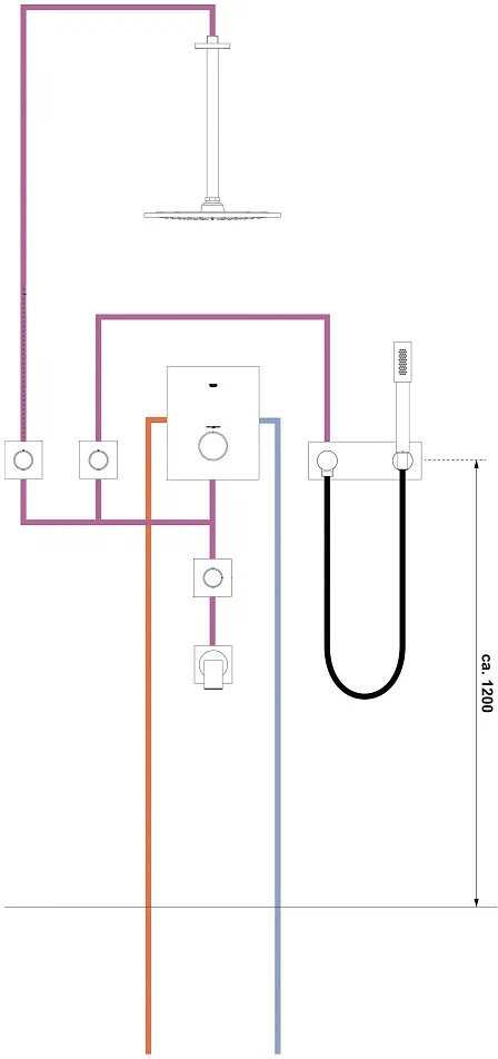 | Комплектация | Верхний душ; Кронштейн; Душевой шланг; Держатель для душевой лейки; Душевая лейка; Штанга душевая; Термостат |