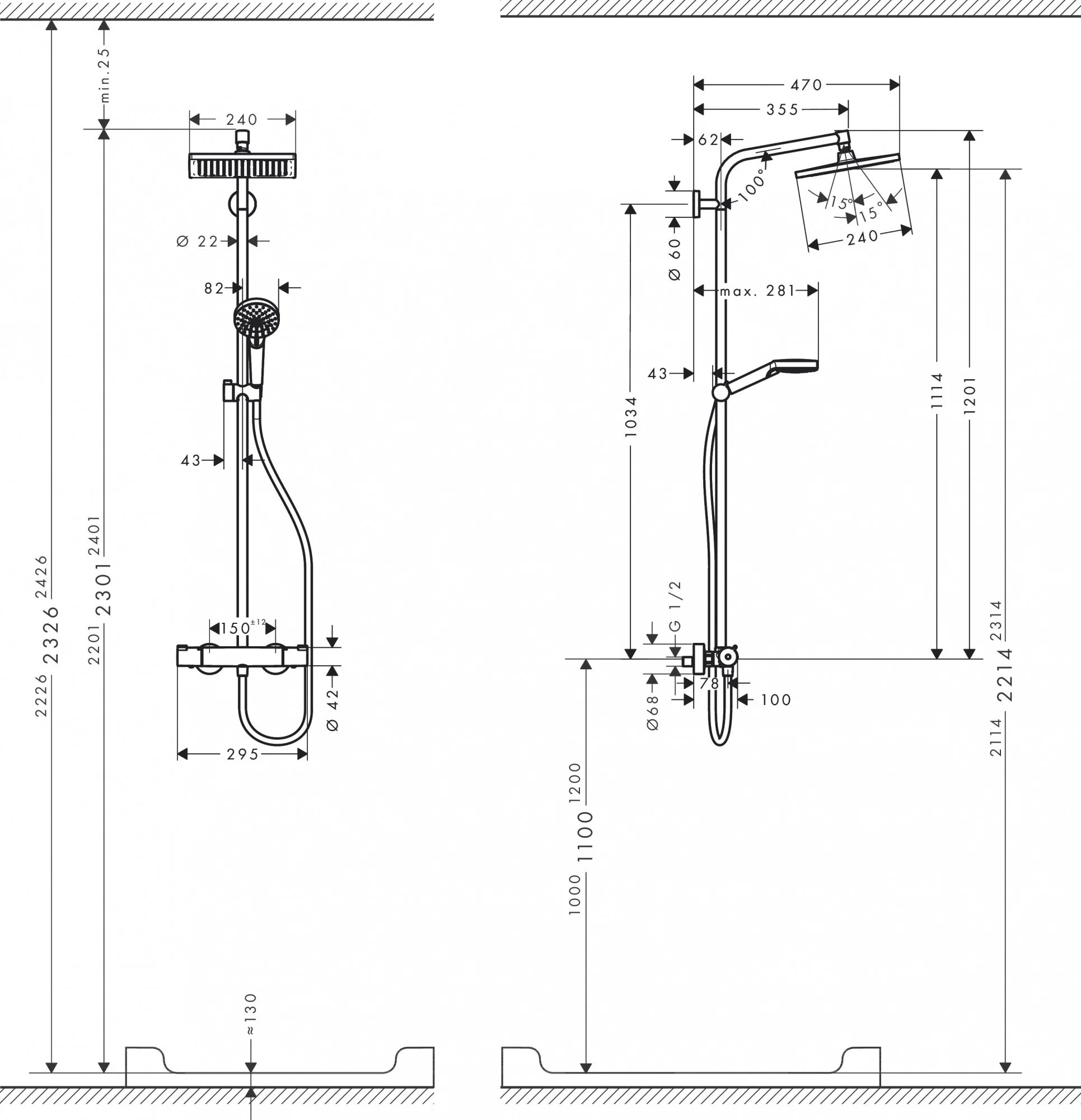 HG27271000 Crometta E Showerpipe 240 1jet Душевая система с термостатом для душа