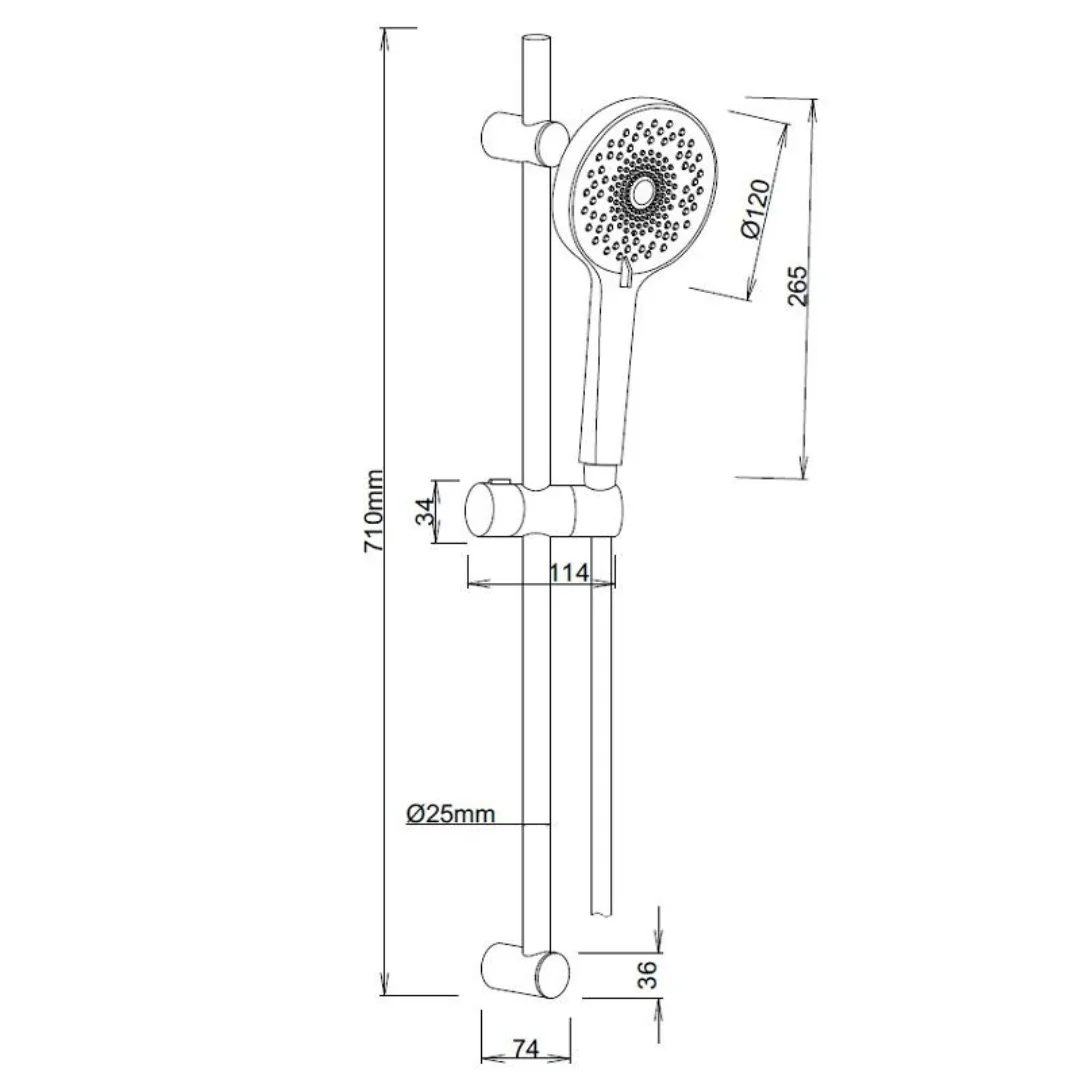 Душевой гарнитур Esko в хромированном цвете — это сочетание стильного дизайна и функциональности. Гарнитур имеет высоту 710 мм и диаметр 25 мм. Корпус выполнен из нержавеющей стали с хромированным покрытием, что обеспечивает долговечность и привлекательный внешний вид. Особенностями гарнитура являются держатель лейки с плавающей функцией FightFix и подвижное крепление FreeMount, что позволяет легко регулировать положение лейки.