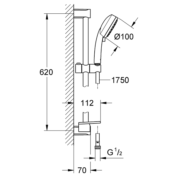 | Комплектация | ручной душ; душевая штанга 600мм; душевой шланг Relexaflex 170 мм1/2" * 1/2"; полочка GROHE EasyReach |