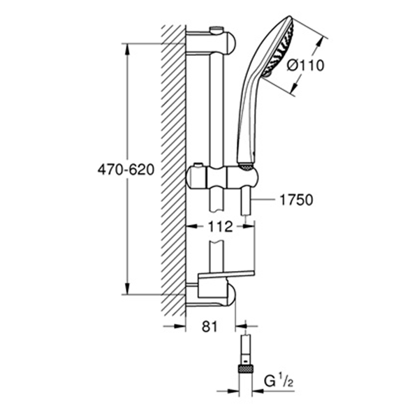 | Комплектация | Ручной душ; душевая штанга 600мм; душевой шланг Relexaflex 1750мм |