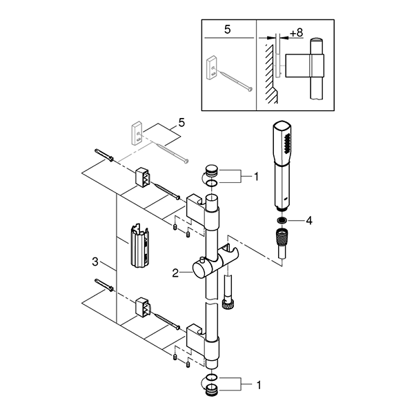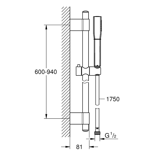 | Комплектация | ручной душ Stick; душевая штанга 900мм; душевой шланг Rotaflex 1750 мм |