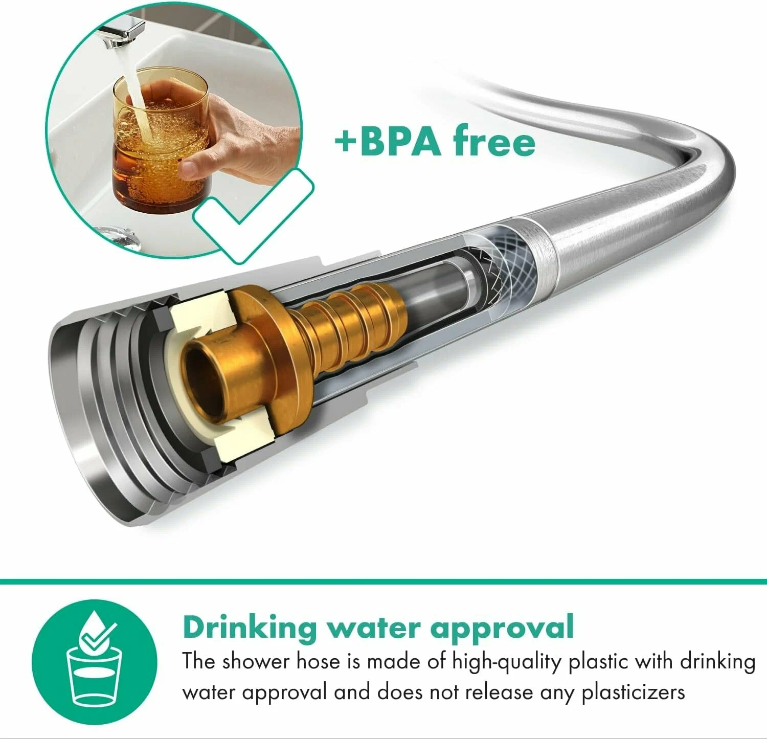 Душевой шланг Hansgrohe Isiflex длиной 1600 мм выполнен в черном цвете и отличается высоким качеством и прочностью. Он оснащен пластиковым покрытием, которое не только делает его легким в очистке, но и придает дополнительную долговечность. Шланг оснащен защитой от перегиба, что увеличивает его срок службы и надежность в эксплуатации.