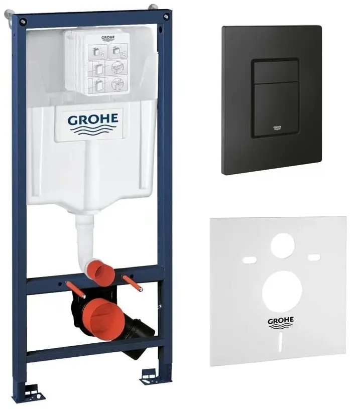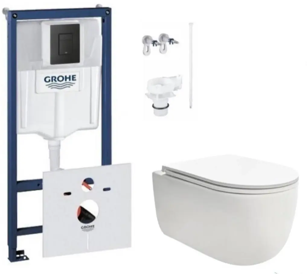 Комплект 4в1: Инсталляция с черной панелью смыва 1000046, унитаз со смывом торнадо и сиденьем WCT301