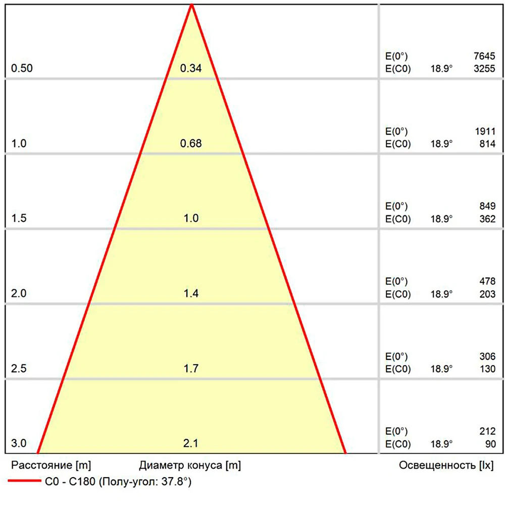 | Площадь освещения | 1 м2 |