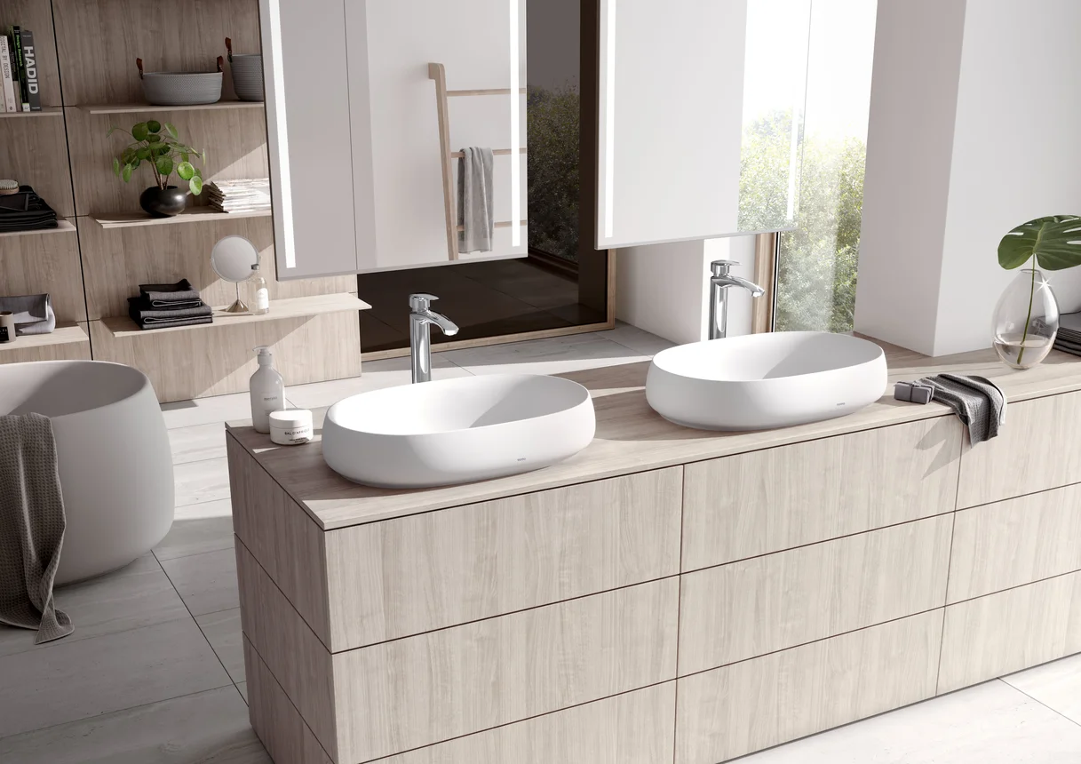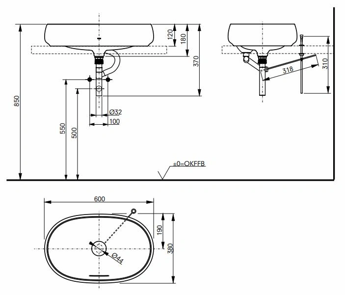 Накладная раковина TOTO CE PJS05WEE#MW: стильная белая круглая раковина диаметром 60 см, идеальная для современных интерьеров ванной комнаты.