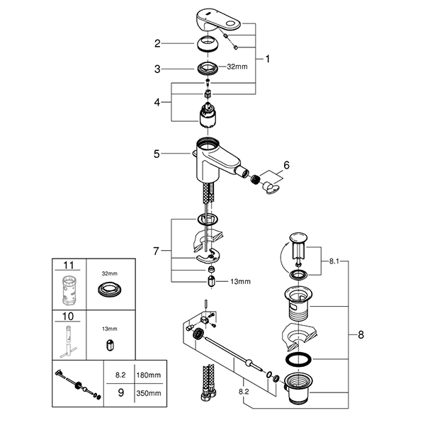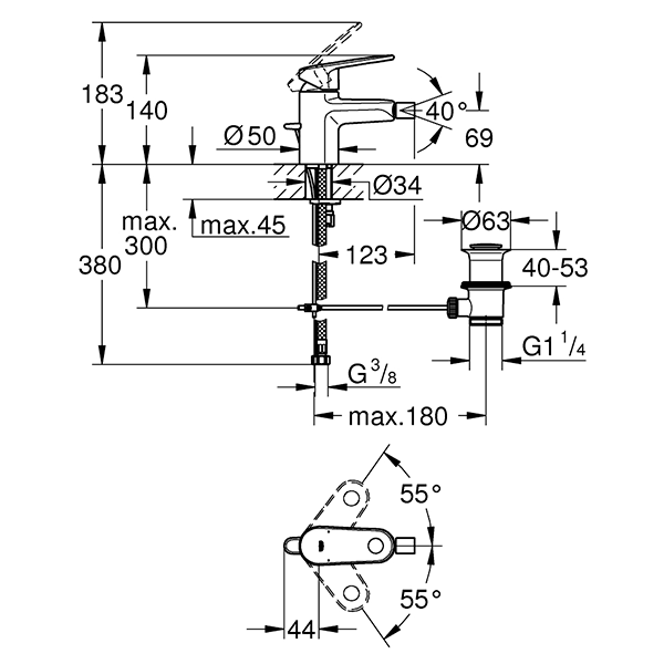 Смеситель для биде с донным клапаном, размер S, хром Grohe Europlus 33241002