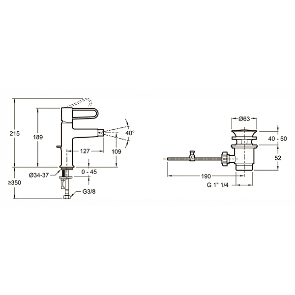 Смеситель для биде с донным клапаном, хром-черный Jacob Delafon Odeon Rive Gauche E21033-BLV-CP