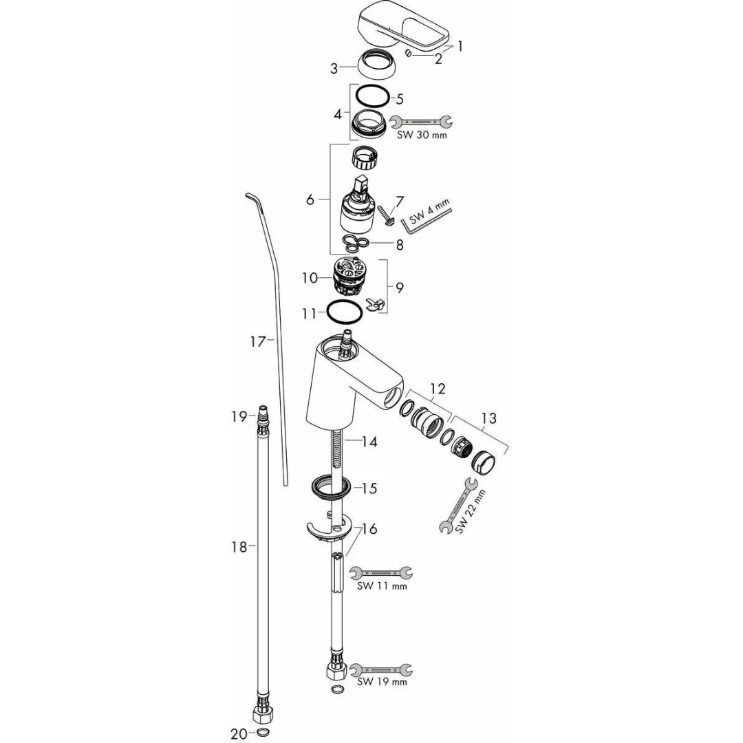 Смеситель для раковины Hansgrohe Logis Loop сочетает в себе функциональность и современный дизайн, обеспечивая комфортное использование и экономию водных ресурсов.