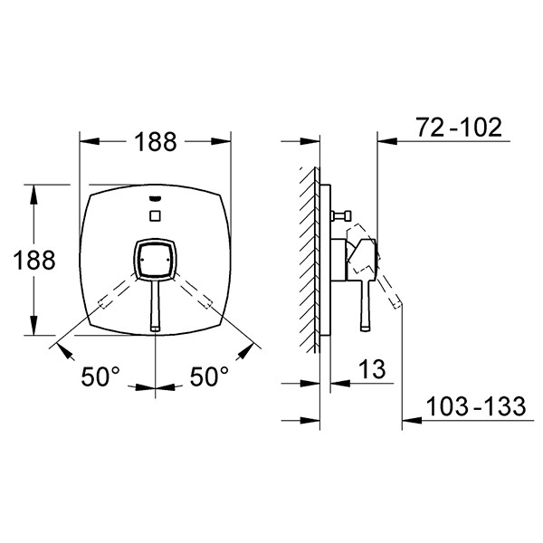 Хромированная поверхность; автоматический переключатель ванна/душ; уплотнитель розетки и рычага;металлическая розетка; скрытое крепление; минимальное давление 1;0 бар