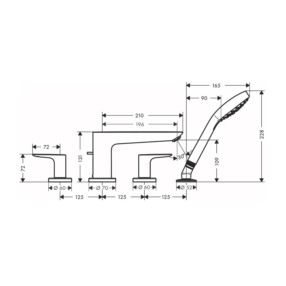 Смеситель для ванны с душем, шлифованный черный хром Hansgrohe Talis E 71748340