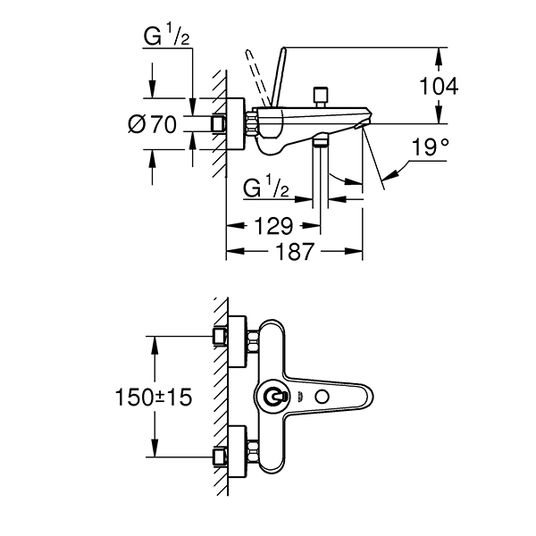 23431000 Eurodisc Joy Смеситель однорычажный для ванны DN15, хром