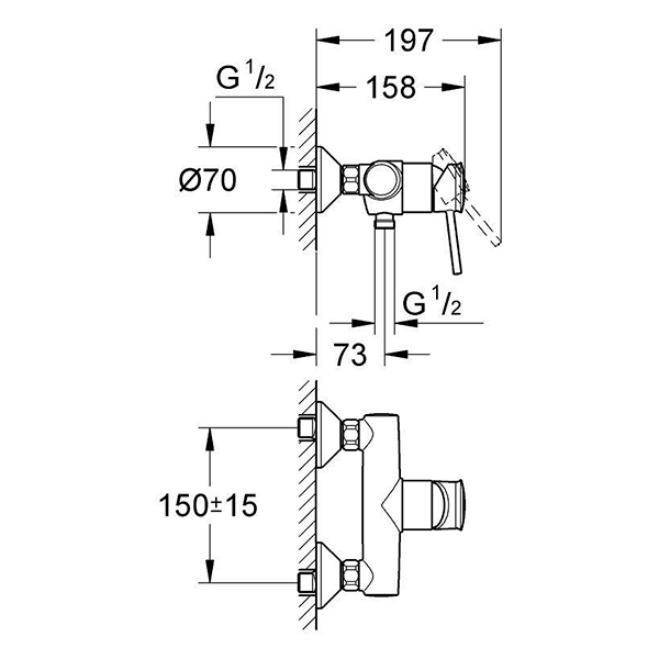 32867000 BauClassic OHM Смеситель однорычажный для душа DN15, хром