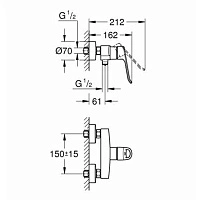 Смеситель для душа, однорычажный, хром Grohe Eurosmart 25242003