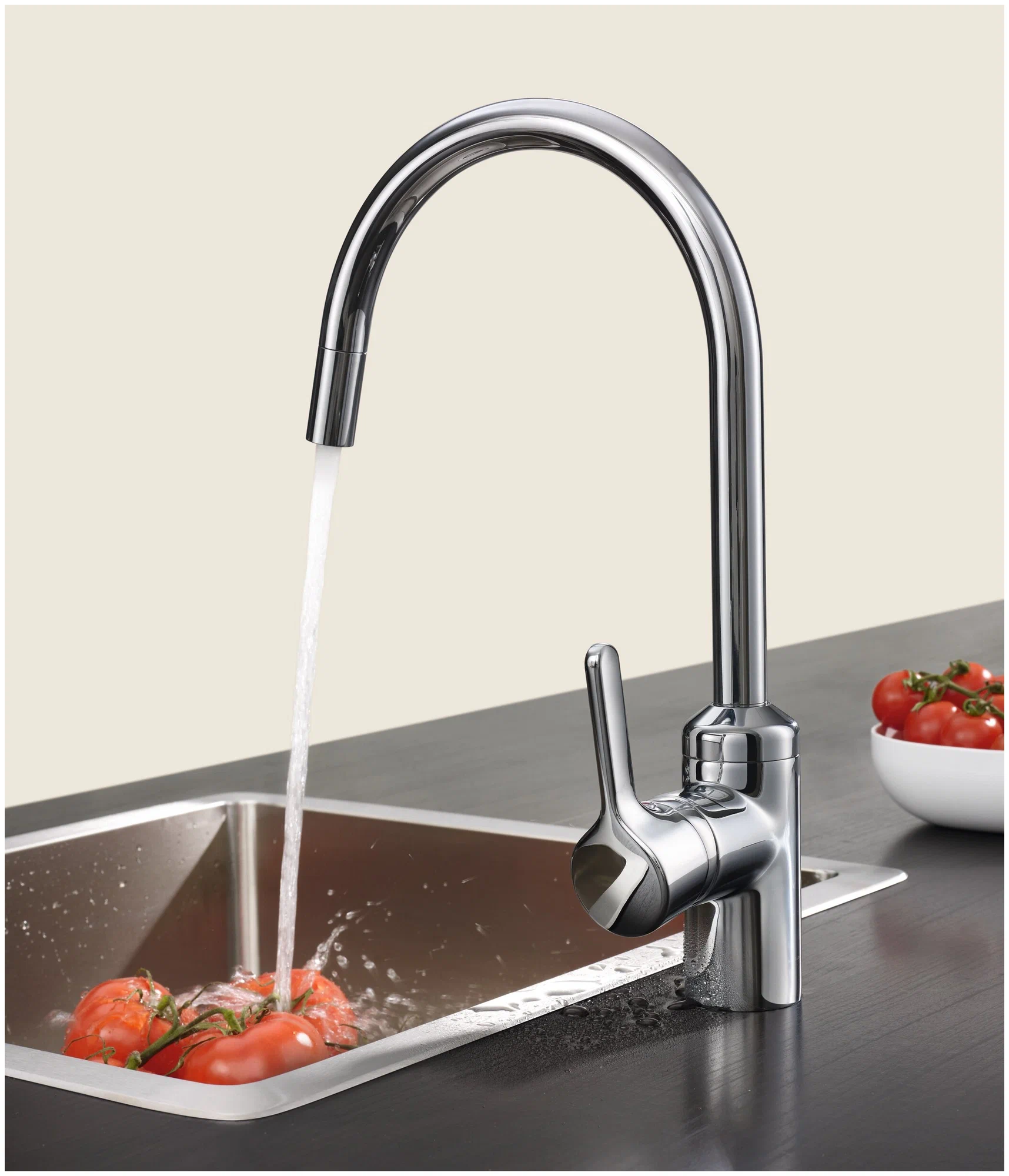 Смеситель Kludi Bingo Star для кухни создан для обеспечения большей свободы и подходит для самых разных стилей ванной комнаты и кухни. Смеситель относится к классу расхода воды Z, что обеспечивает экономичное использование воды. Аэратор Cache М 16,5 х 1 обеспечивает равномерный поток воды. Смеситель защищен от обратного тока воды благодаря встроенному клапану. Класс шума I обеспечивает тихую работу смесителя. Смеситель доступен в цвете хром или нержавеющая сталь для соответствия различным дизайнам кухонь.